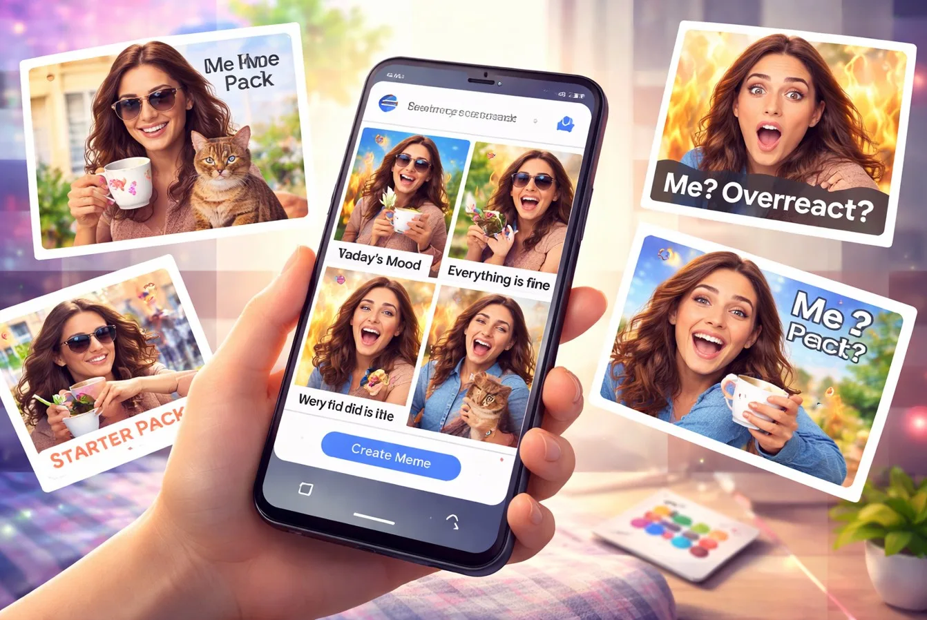 Δημιουργία Σκηνικού: Στη συνέχεια, τοποθετεί το “κομμένο” πρόσωπό σας σε ένα νέο, τεχνητά δημιουργημένο φόντο που ταιριάζει σε αισθητική μιμιδίου.