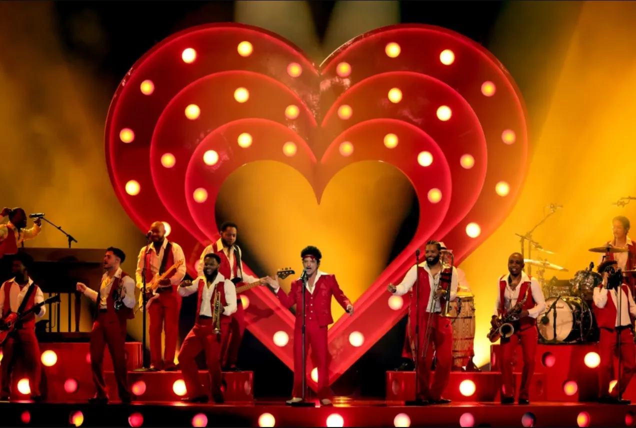 Η βραδιά άνοιξε εντυπωσιακά με τους Rosé και Bruno Mars να ερμηνεύουν το παγκόσμιο hit “APT.”, ξεσηκώνοντας το κοινό.