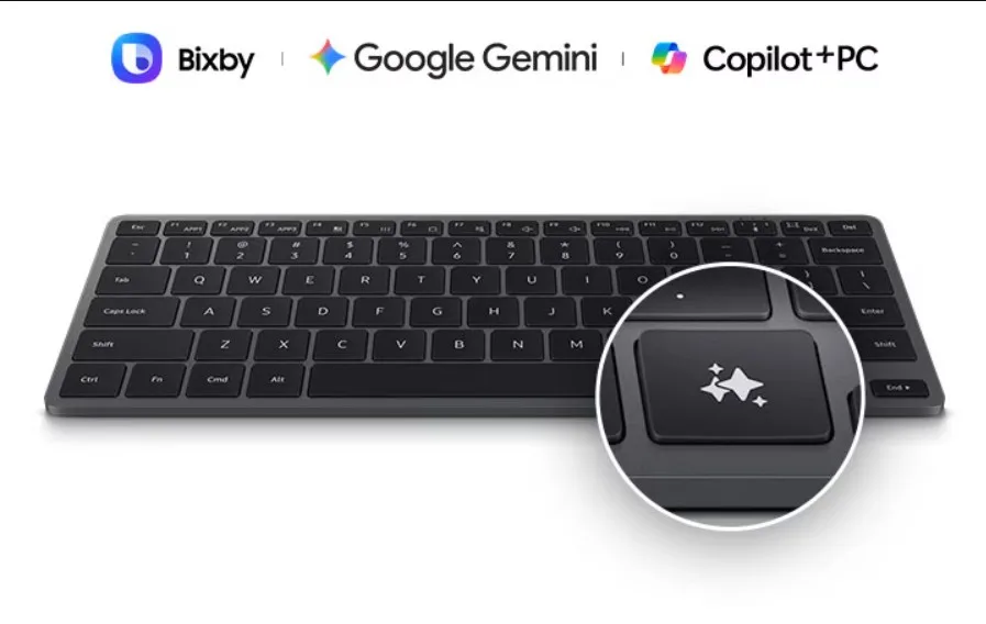 Το πιο εντυπωσιακό στοιχείο του νέου πληκτρολογίου είναι το ειδικό πλήκτρο τεχνητής νοημοσύνης. Με αυτό, ο χρήστης μπορεί να ενεργοποιεί αμέσως τον AI βοηθό της επιλογής του, να συντάσσει κείμενα, να ζητά επεξεργασία περιεχομένου ή να εκτελεί εντολές σε πραγματικό χρόνο. Η Samsung δίνει ιδιαίτερη έμφαση στο ότι το πληκτρολόγιο σχεδιάστηκε για την εποχή όπου η AI αποτελεί βασικό κομμάτι της καθημερινής εργασίας.