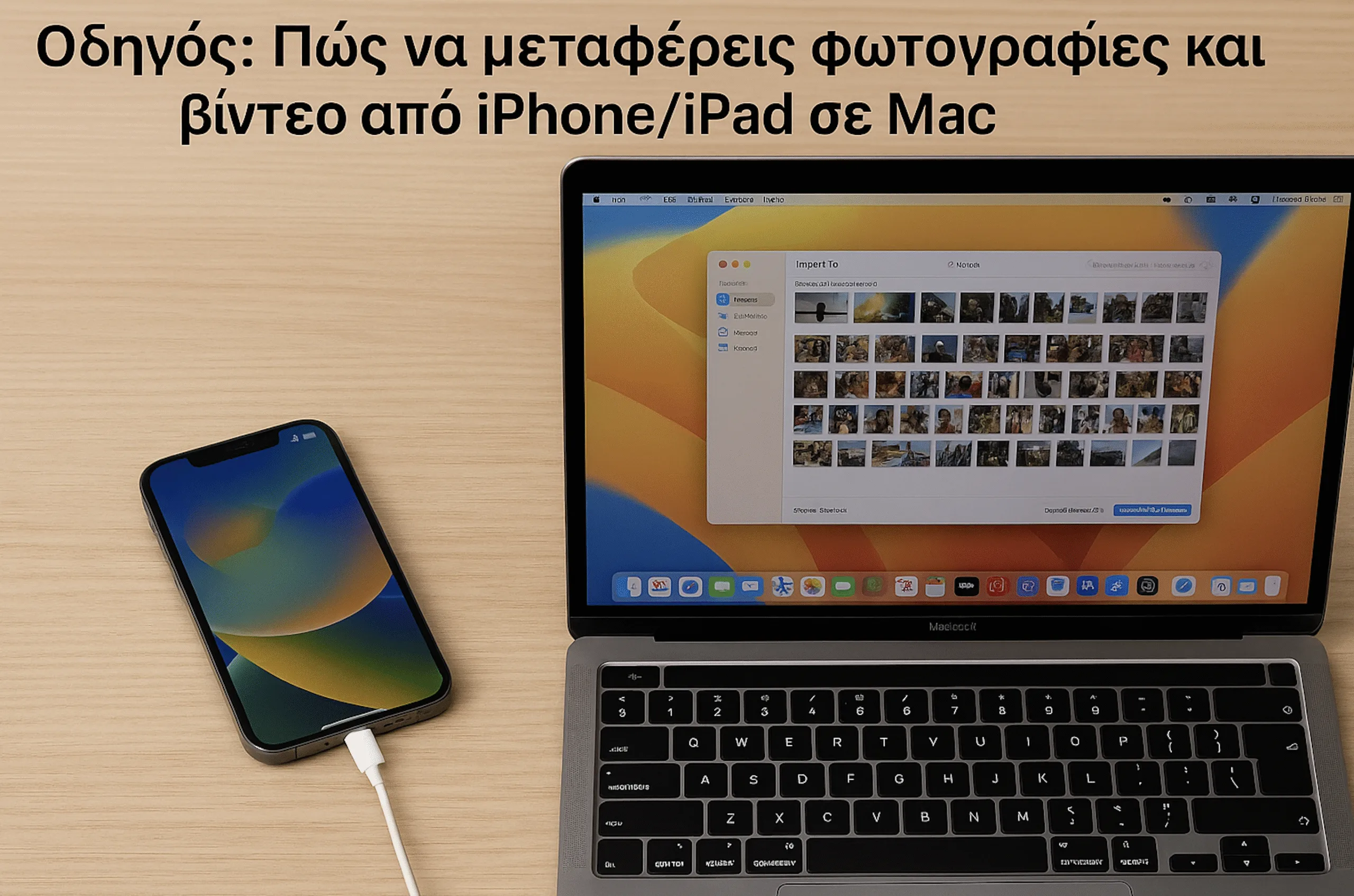 Αν χρησιμοποιείς ήδη το iCloud Photos, οι φωτογραφίες σου συγχρονίζονται αυτόματα μεταξύ συσκευών. Αν όχι ή προτιμάς να κάνεις χειροκίνητη μεταφορά, προχώρα με καλώδιο USB.