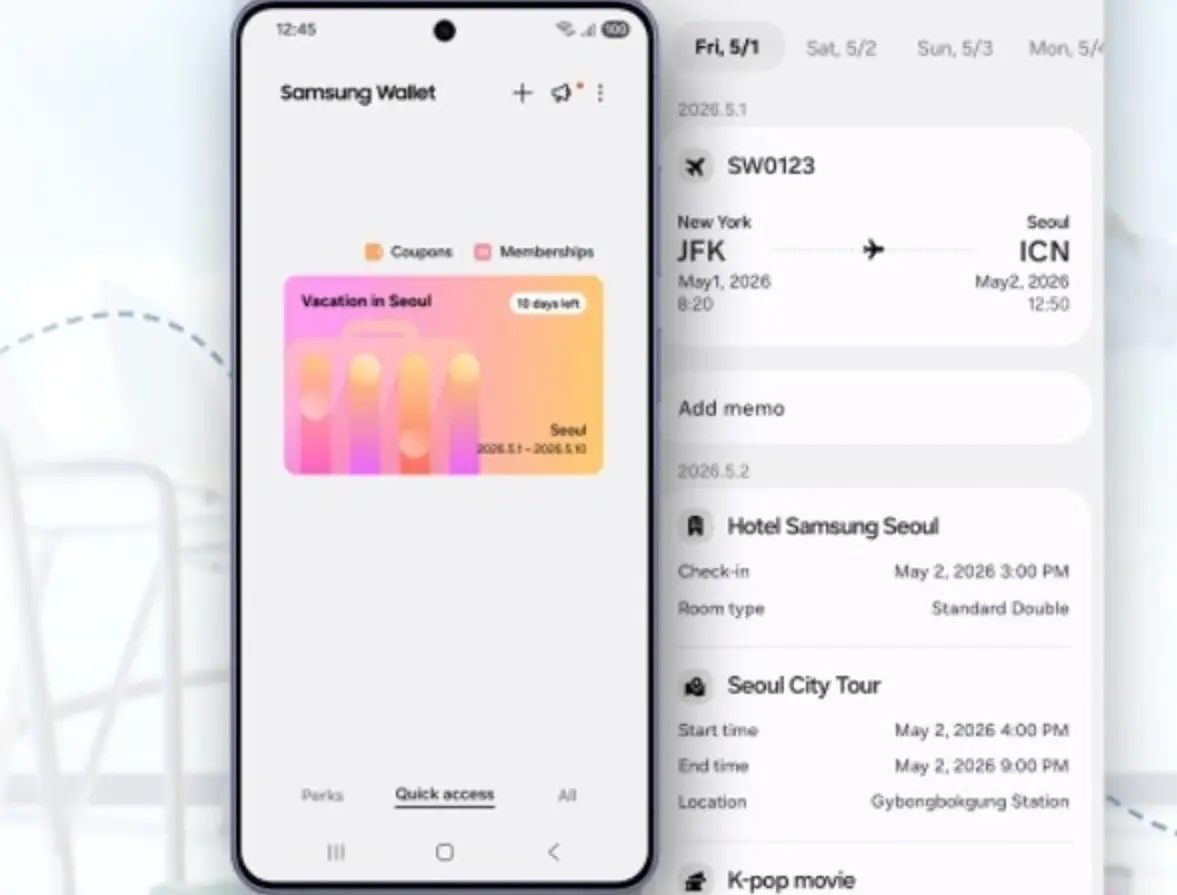 Στην πράξη, οι χρήστες του Samsung Wallet μπορούν να διαχειριστούν ένα τεράστιο εύρος ταξιδιωτικών εμπειριών και δραστηριοτήτων. Το σύστημα υποστηρίζει κρατήσεις ξενοδοχείων, δρομολόγια πτήσεων, ενοικιάσεις αυτοκινήτων και οργανωμένες εκδρομές, καθώς και εισιτήρια για λεωφορεία, τρένα, θεματικά πάρκα και μεγάλες αθλητικές εκδηλώσεις. Ωστόσο, η ευελιξία του συστήματος δεν σταματά στην αυτοματοποιημένη εισαγωγή δεδομένων.