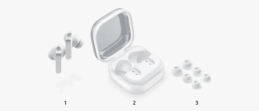 Από την άλλη πλευρά, το επαγγελματικό μοντέλο Pro υιοθετεί μια αρχιτεκτονική που εισχωρεί βαθιά στον ακουστικό πόρο (in-canal), χρησιμοποιώντας τα γνωστά ελαστικά άκρα σιλικόνης. Εδώ, ο σχεδιασμός γίνεται κομψά διχρωματικός (two-tone) και περιλαμβάνει έναν εμφανή εξωτερικό αεραγωγό για την ιδανική εξισορρόπηση της πίεσης. Ωστόσο, την παράσταση κλέβει δικαιωματικά η ολοκαίνουργια, εντυπωσιακά διάφανη θήκη φόρτισης, η οποία υποστηρίζει πλήρως την ασύρματη μεταφορά ενέργειας, δίνοντας μια έντονα φουτουριστική αισθητική στο κορυφαίο μοντέλο της δημοφιλούς σειράς Galaxy.